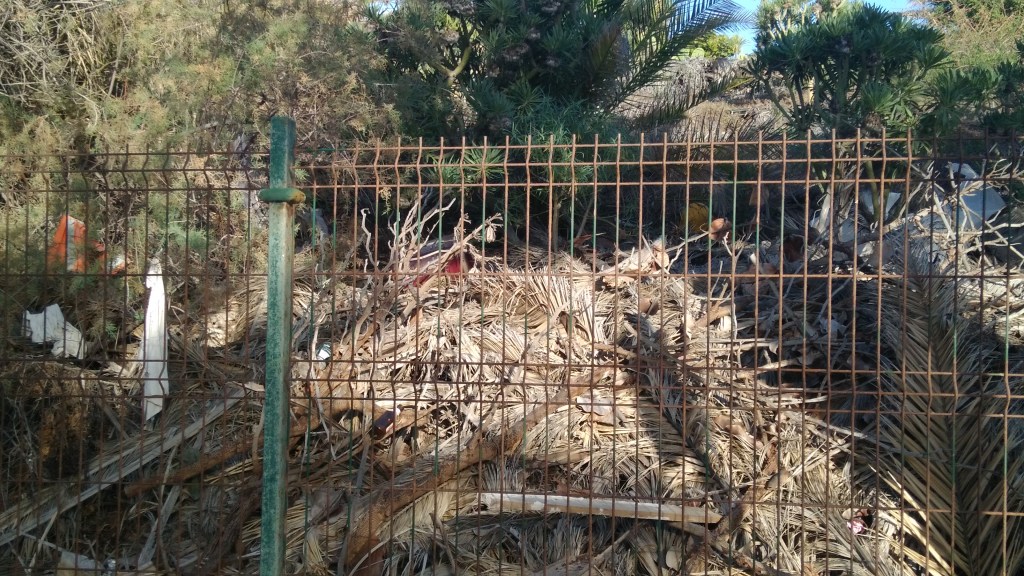 Paralela a la Avenida Marítima de la mencionada población, y no muy lejos de restaurantes y hoteles conocidos. No sabemos a quien pertenece este terreno, ni quien tendrá competencia para mantener su limpieza, pero es todo un «deleite visual» para residentes y turistas.